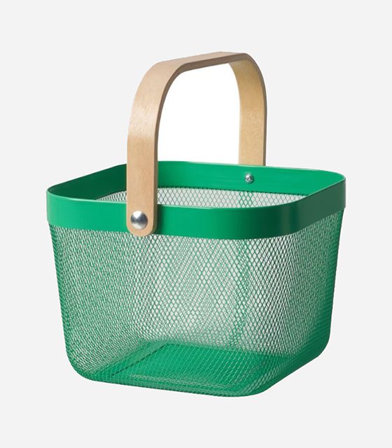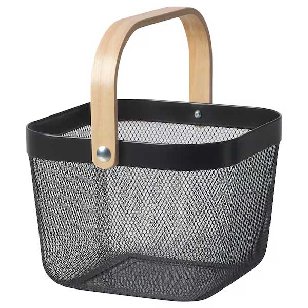 سبد نظم دهنده ایکیا که برای آشپزخانه جهت قرار دادن ملزومات آشپزخانه و یا در اتاق مطالعه جهت نگهداری کتاب و وسایل مربوط به آن و همچنین به عنوان سبد مسافرتی هم می توان از آن استفاده کرد. جنس بدنه آن از استیل و دسته آن از چوب طبیعی می باشد.