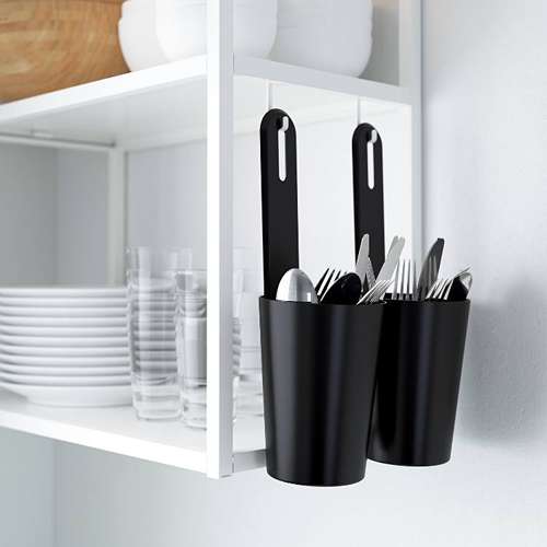 میتوانید این ظرف را روی قلاب آویزان کنید تا به سرعت فضایی برای کارد و چنگال و ظروف در آشپزخانه یا خمیردندان و برس مو در حمام ایجاد شود.جنس پلاستیک پلیپروپیلن (حداقل ۲۰٪ بازیافتی) مراقبت: با محلول صابون ملایم تمیز کنید.با یک پارچه تمیز خشک کنید.
