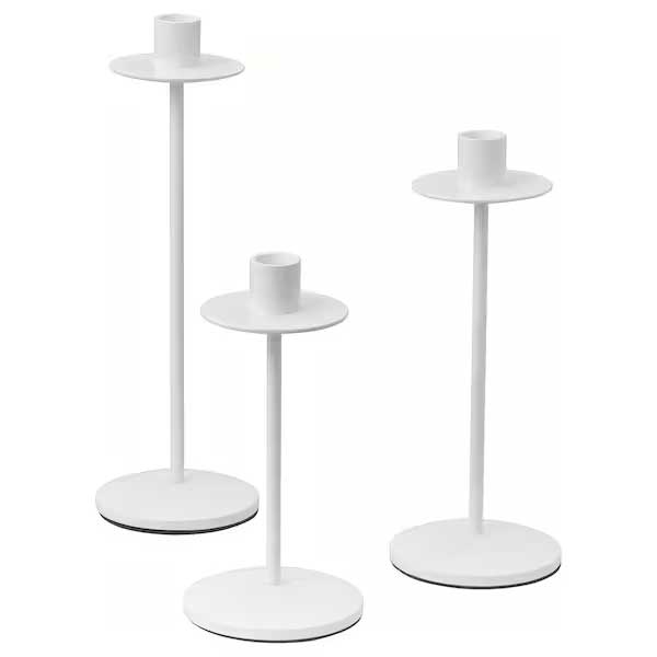 زیبایی و کارایی شمعدانهای FRÖJDA شمعدان FRÖJDA، یکی از طراحیهای برجستهی برند ایکیا است که در ست سهتایی ارائه میشود و شامل سه اندازه مختلف (ارتفاع ۲۰، ۲۵ و ۳۰ سانتیمتر) است. این محصول به رنگ سفید درخشان، با طراحی مدرن و مینیمالیستی، جلوهای خاص به میز یا فضای داخلی شما میبخشد. ترکیب فلز و پوشش پودری اپوکسی/پلیاستر در بدنه و پایههای شمعدان، ماندگاری بالا و ظاهری خیرهکننده به این محصول میبخشد.ابعاد و تنوع اندازهها: شامل سه شمعدان با ارتفاعهای ۲۰، ۲۵ و ۳۰ سانتیمتر برای استفاده در دکوراسیونهای متنوع.جنس عالی و ماندگار: بدنه و پایهها از آلومینیوم و استیل با پوشش مقاوم ساخته شدهاند.رنگ سفید و براق: رنگ سفید جذاب این شمعدانها به راحتی با هر نوع دکوراسیونی هماهنگ میشود.