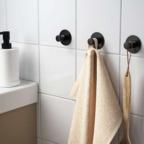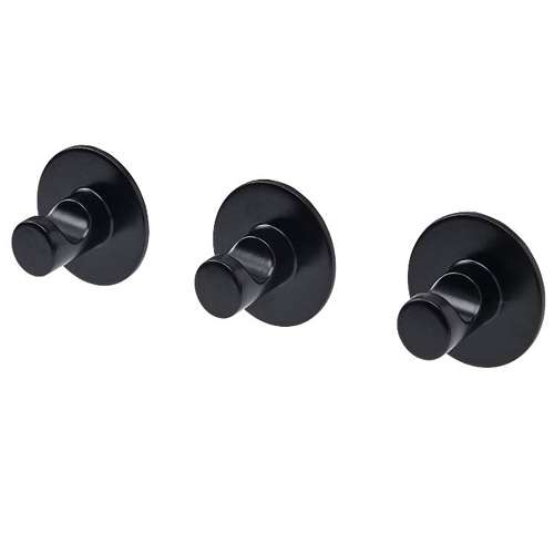 برای این بسته ۳ تایی قلاب مشکی رنگ، به هیچ ابزاری نیاز نیست - فقط با استفاده از نوار چسب پشت آن، آن را به دیوار بچسبانید. روشی ساده برای اینکه دیوارهایتان را بدون نیاز به سوراخ کردن، کاربردی کنید. جنس این محصول از آلومینیوم و پلی استر می باشد. و تا 3 کیلو گرم وزن را تحمل می کند.