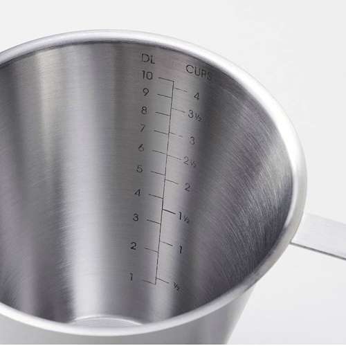 در دو مقیاس اندازهگیری، دسیلیتر و پینت، درجهبندی شده است. قبل از اولین استفاده، این محصول را بشویید. مواد موجود در این محصول ممکن است قابل بازیافت باشند. لطفاً قوانین بازیافت در جامعه خود و وجود امکانات بازیافت در منطقه خود را بررسی کنید .جنس : فولاد ضد زنگ و قابل شستشو در ماشین ظرفشویی
