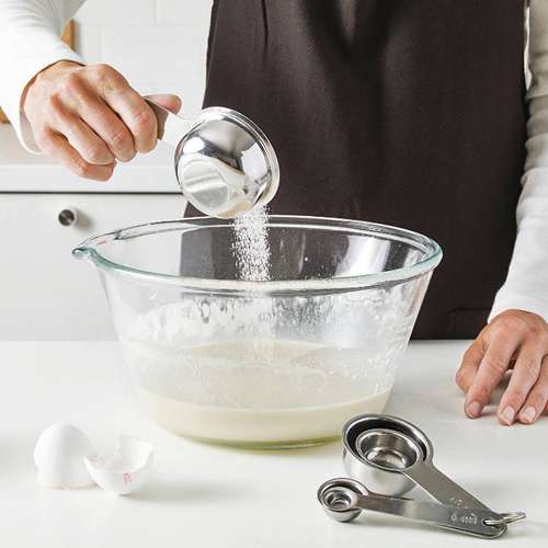 هیچ اشکالی در اندازهگیری چشمی وجود ندارد، اما اندازهگیری دقیق، رسیدن به طعم مناسب را آسانتر میکند. این پنج پیمانه برای اکثر دستورهای غذایی مناسب هستند، ابعاد آنها با هم متناسب است و میتوان آنها را به قلاب آویزان کرد.به شما کمک میکند هنگام آشپزی یا شیرینیپزی، مقدار مناسبی از ادویهها، آرد یا سایر طعمدهندهها را در دسترس داشته باشید. از آنجایی که ابعاد آنها با هم متناسب است، فضای ذخیرهسازی کمی اشغال میکنند. میتوانید آنها را روی قلابی بالای میز آشپزخانه آویزان کنید تا همیشه در دسترس باشند. شامل: ۱ میلیلیتر، ۱ قاشق چایخوری، ۱ قاشق غذاخوری، ۱/۲ دسیلیتر و ۱ دسیلیتر. قبل از اولین استفاده، این محصول را بشویید. مواد موجود در این محصول ممکن است قابل بازیافت باشند. لطفاً قوانین بازیافت در جامعه خود و وجود امکانات بازیافت در منطقه خود را بررسی کنید.