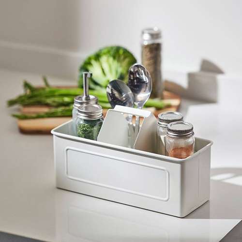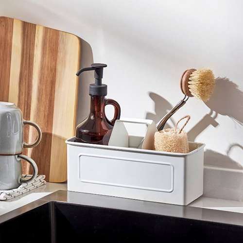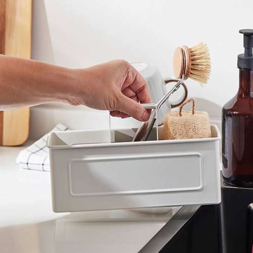 مناسب برای قرار دادن کنار سینک ظرفشویی برای نگه داشتن مایع ظرفشویی، اسفنج ظرفشویی و برس در دسترس - بدون اینکه همه چیز به صورت نامرتب روی میز آشپزخانه قرار گیرد. دستگیره حمل و جابجایی آن را به هر کجا که دوست دارید آسان میکند، که به عنوان جداکننده نیز عمل میکند. جنس : فولاد، می باشد و با پارچهای که در پاککننده ملایم مرطوب شده است، تمیز کنید.