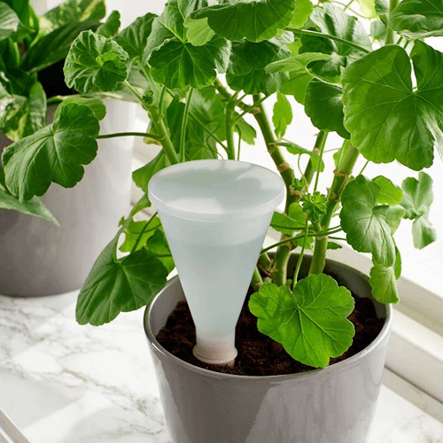 گاهی اوقات فراموش میکنید که به گیاهان آب بدهید؟ اگر چنین است، آبپاش خودکار راه حل است. فقط آن را داخل خاک قرار دهید و خودش آبیاری را برای شما انجام میدهد. برای هر گلدانی مناسب است - و ظاهر زیبایی هم دارد! وقتی این آبپاش خودکار داخل خاک هر گلدانی قرار میگیرد، آب از طریق آبپاش سفالی به خاک نفوذ میکند. آبپاش سفالی باعث میشود آب کندتر از سایر محلولها نفوذ کند، بنابراین آب برای مدت طولانیتری باقی میماند. همچنین میتوان ظرف آب را با یک بطری PET یک لیتری جایگزین کرد تا در مواقعی که در تعطیلات هستید، حجم آب بیشتری داشته باشید. ظرف آب از پلاستیک نیمه شفاف ساخته شده است، بنابراین میتوانید سطح آب را ببینید و در صورت نیاز آب اضافه کنید. ظرف آب دارای یک درب در بالا برای پر کردن آسان است و در عین حال حشرات را نیز دور نگه میدارد.