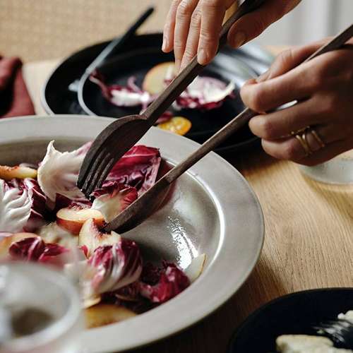 کیفیتی ماندگار و عشق به جزئیات، هر وعده غذایی را خاص میکند. این سالادخوریهای مینیمالیستی ساخته شده از چوب گردو، ظاهری شیک، ساده و شیک دارند.برای افزایش طول عمر محصول، هر از گاهی آن را با روغن نباتی درمان کنید.