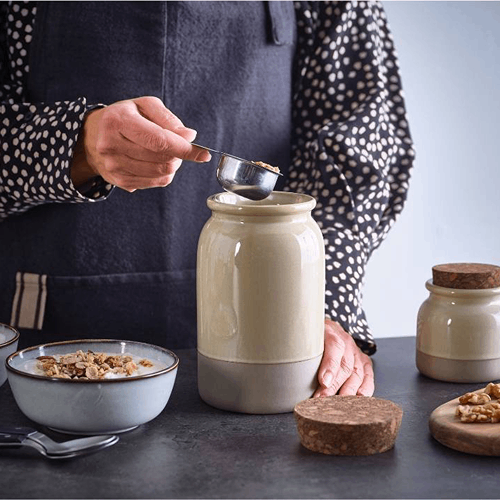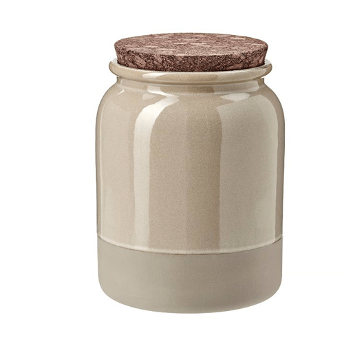 ظرف دربدار هم کاربردی و هم تزئینی برای نگهداری مواد غذایی در ظروف سفالی با سطح لعابدار است. خوب است که روی قفسه یا روی میز کار آشپزخانه قرار گیرد. مناسب برای پودر قند، ادویهها، چای کیسهای و سایر غذاهای خشک ─ یا برای قرار دادن روی میز با سسها و چاشنیها. درب چوب پنبهای، حس گرم، لمسی و طبیعی را به آشپزخانه میبخشد، در حالی که محکم بسته شدن آن، آن را کاربردی نیز میکند. این کالا از جنس پودر سنگ می باشد و قابلیت گذاشتن در ماشین ظرفشویی را دارد.